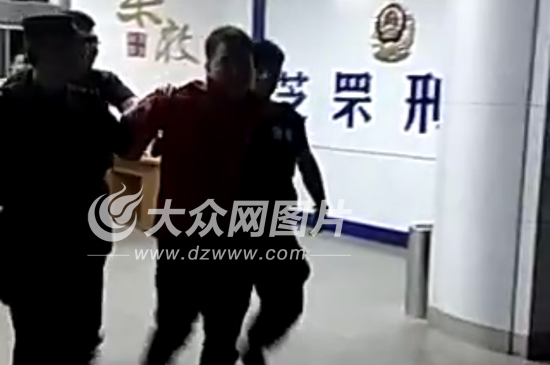 犯罪嫌疑人被押送到警察局。