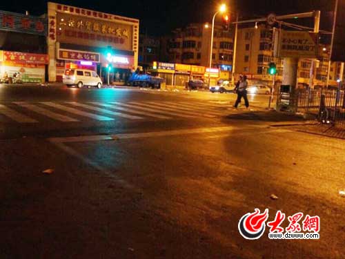 當晚22時許,大眾網記者趕到事發現場——芝罘區福河路和幸福中路交叉口北側祥和花鳥市場附近。雖然夜色已深,但地面上的血跡仍然十分刺目。事發地點東10米有一家報刊亭,報亭的老板告訴大眾網記者,當時,兩名身穿便服的民警與犯罪嫌疑人進行搏斗,犯罪嫌疑人掏出刀刺向其中一名民警頸部后逃走。在搏斗過程中,有一名看上去約四五十歲的市民也沖上前一起與歹徒搏斗。