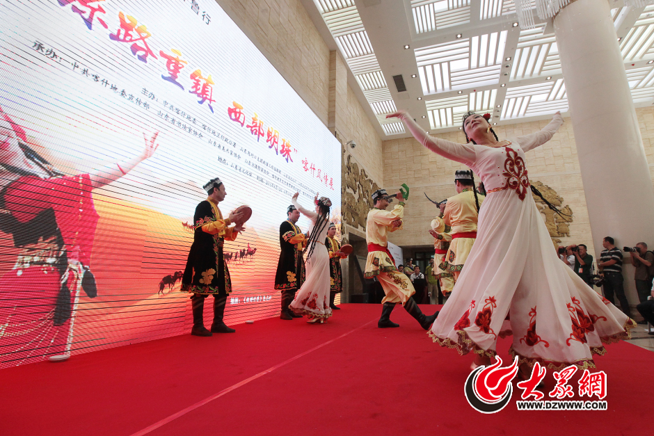 孫守剛宣布“喀什文化齊魯行——‘絲路重鎮 西部明珠’喀什風情展”正式開幕。隨后,出席開幕式的領導和嘉賓參觀了展覽,并現場觀看了《喀什賽乃姆》等喀什特色歌舞表演。