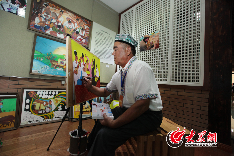 8月12日,“喀什文化齊魯行——‘絲路重鎮 西部明珠’喀什風情展”在山東省文化館開幕。圖為喀什刀郎農民畫展示。
