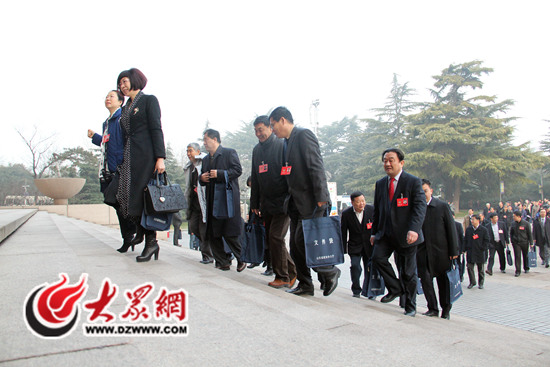 今天上午8:30左右,參加山東省政協十一屆三次會議開幕會議的政協委員開始入場