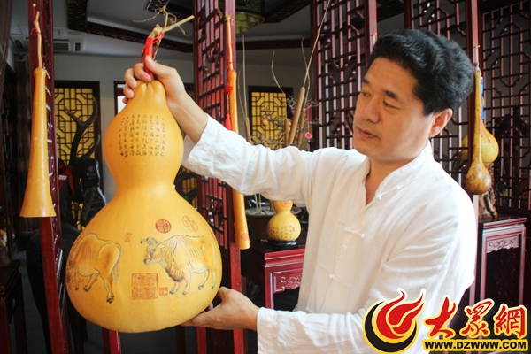 孫希洲說,“雕刻葫蘆是個非常費眼睛的活,一開始學,稍不留神就會劃破手,要求眼、心、手高度專一!