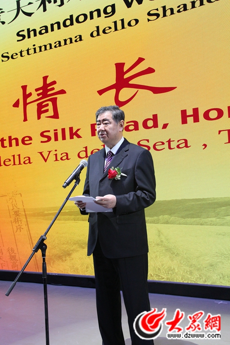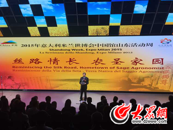 米蘭世博會(huì)山東周組委會(huì)主任王軍民在開(kāi)幕式上介紹了山東農(nóng)業(yè)發(fā)展成就和山東與意大利經(jīng)貿(mào)合作情況。