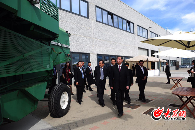 大眾網米蘭9月16日訊(特派記者 邢玉軍)當地時間15日上午,在意大利出席2015米蘭世博會中國館山東周系列活動的山東活動周組委會主任王軍民一行,前往意大利城市博洛尼亞,考察了設在這里的福田雷沃研發中心,并為新成立的雷沃阿波斯公司揭牌。