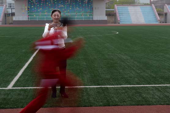 張水蓮用手機記錄女兒鍛煉。她覺得孩子的成長過程如果不及時記錄,就會像影子一樣一閃而過,再也不能重復。