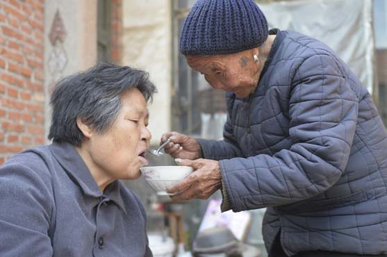 “俺娘哎!她剛得病那陣子,一直昏迷。住了好長一段時間醫(yī)院,人倒是醒了,就是活動不方便了,半個身子不能動,生活不能自理。”陳兆蘭老人想起往事禁不住感嘆,“沒法子,俺就照顧照顧她吧,給她做口飯吃,幫她活動活動。”