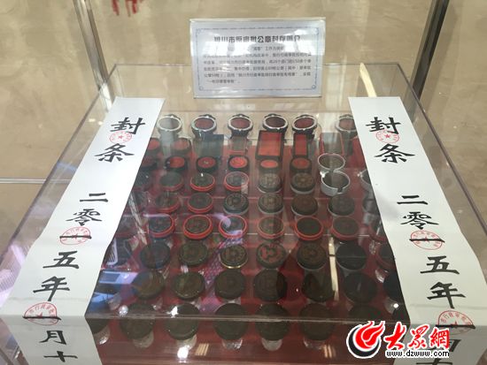 銀川市民大廳展示著貼著封條的印章,這里將59枚行政審批章合為一枚。