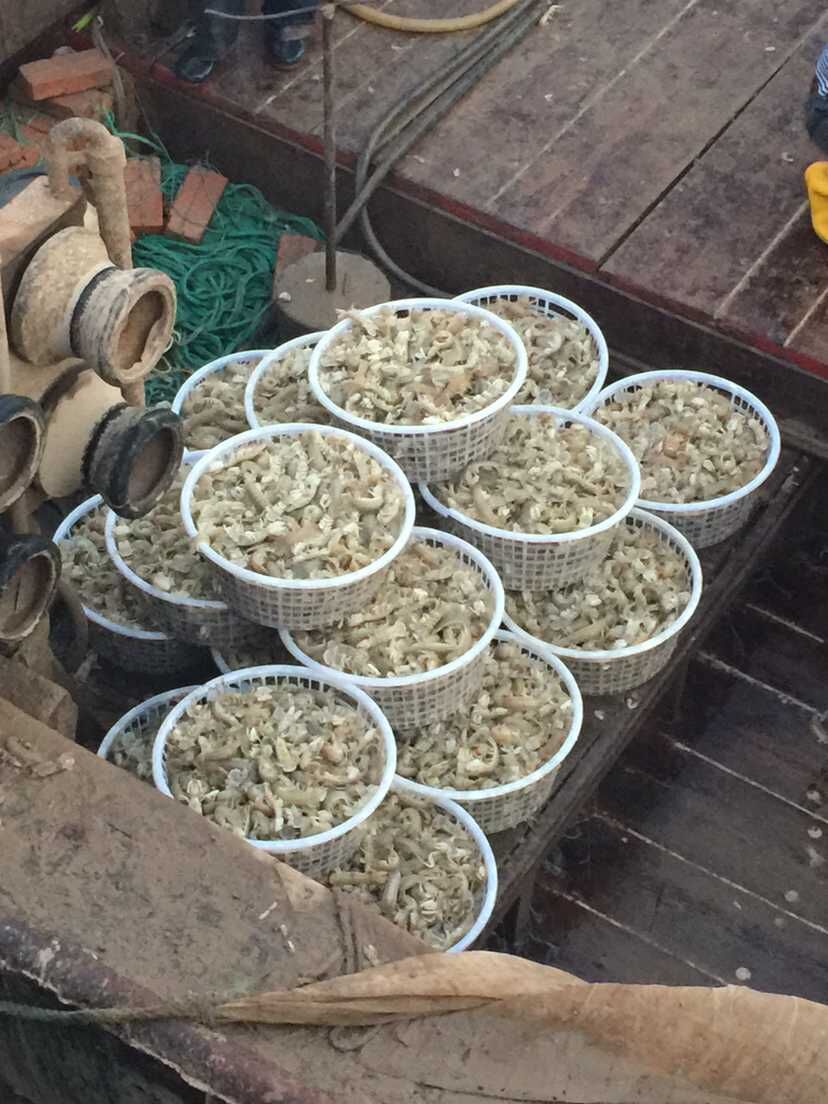船老大們洋溢著幸福的笑容,把一船船活蹦亂跳的蝦虎和魚蟹搬上岸。
