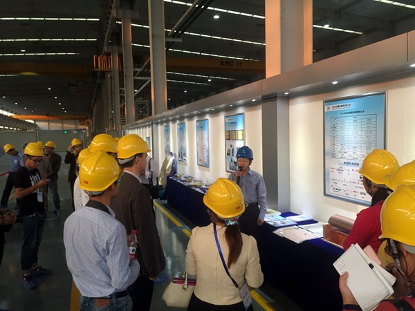 在山東天和壓延銅箔有限公司生產(chǎn)車間,公司副總經(jīng)理韓新俊向采訪團介紹產(chǎn)品特性。