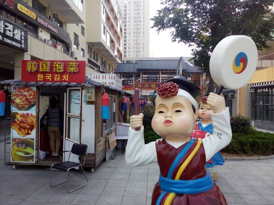 除了韓國風(fēng)格的建筑雕塑,韓樂坊內(nèi)自然也少不了各種韓國文化風(fēng)情。這里有韓國民俗泡菜體驗館、韓國婚慶體驗館、韓國傳統(tǒng)服飾體驗館,是威海最具“韓范兒”的地方。以韓國風(fēng)情為主題的美食一條街,則聚集了40余家韓國料理餐飲企業(yè)入駐。泡菜、烤肉、拌飯……在這里,你能品嘗最地道的韓國美食,盡情享受舌尖上的韓國,就連店鋪的名字和菜單都是用中韓雙語書寫的,每一處細節(jié)無不透著韓國元素。