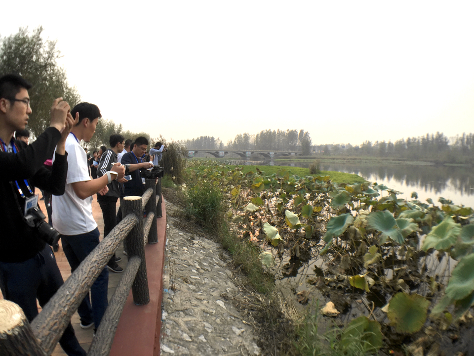 10月15日,第十一屆中國網絡媒體山東行采訪團來到臨沂武河濕地公園采訪。大眾網記者 攝