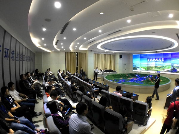 10月15日,第十一屆中國網絡媒體山東行采訪團走進臨沂環境監控應急指揮中心。大眾網記者 攝