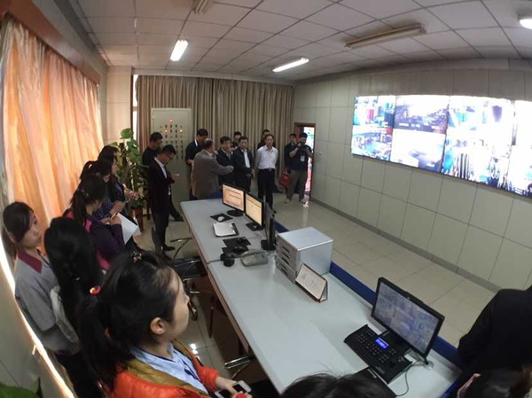 筒子紗生產車間監控室對每一個生產環節進行監控查看
