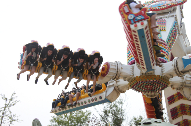 圖為正在體驗急速風車項目的游客,可體驗猶如在空中盡情飄揚的強烈刺激感和無盡的歡樂滿足感。