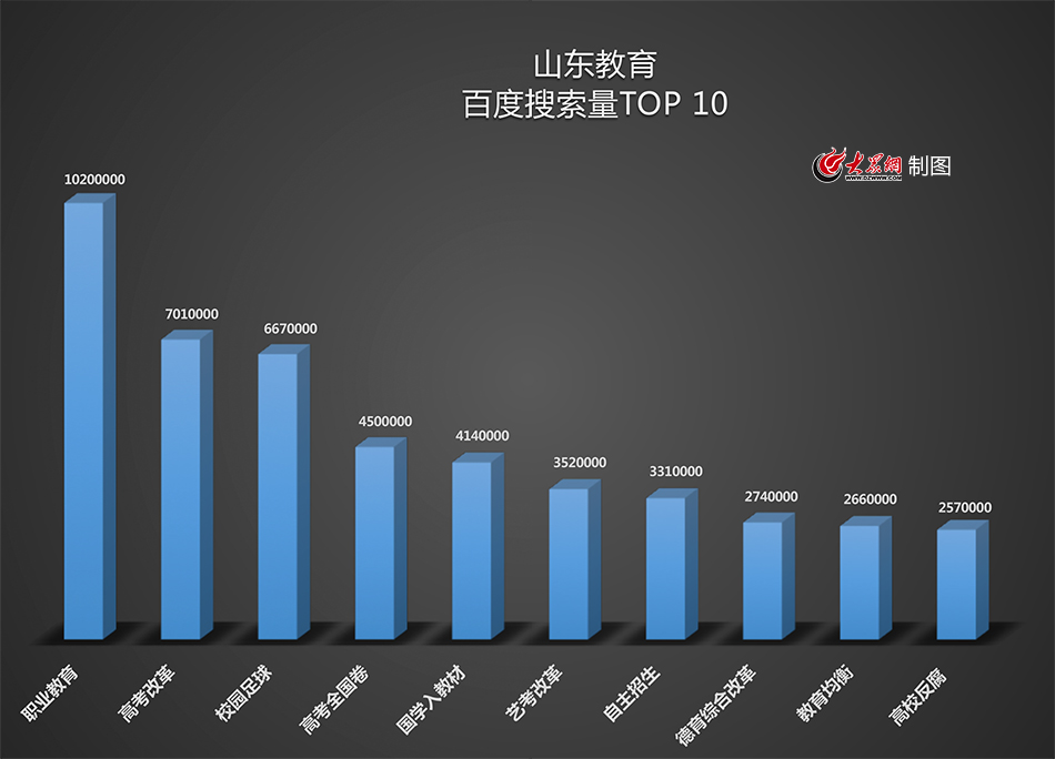 大眾網濟南5月8日訊(記者 姜洋)教師、課程、考試...教育可謂是充斥著所有人的生活。大眾網通過大數據分析得出,一年來,“職業教育”、“高考改革”、“校園足球”成為網友們最關注的問題,在百度搜索上躋身前三名;而“高考加分”則成為微博上最熱的教育話題。