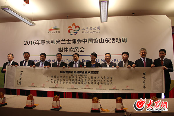 大眾網米蘭9月15日訊(特派記者 邢玉軍)當地時間15日上午,2015年意大利米蘭世博會中國館山東活動周舉行吹風會,向海內外媒體介紹山東周活動內容。