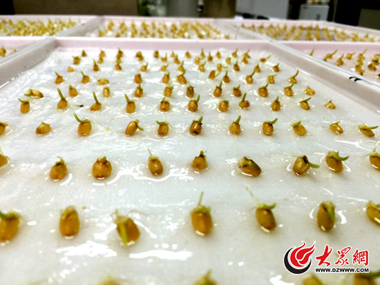 山東省農科院作物生態生理研究室里正在進行的小麥發芽實驗。