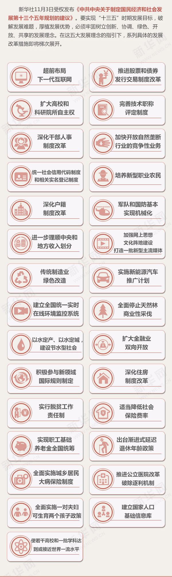 新華社3日受權發(fā)布《中共中央關于制定國民經濟和社會發(fā)展第十三個五年規(guī)劃的建議》,全文約25000字;我們現將《建議》中的重要內容摘錄出來,供大家參考。
