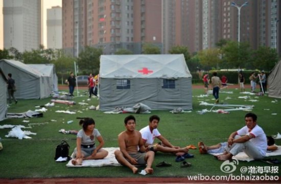 天津開發區第二小學成為緊急疏散點 傷員席地休息