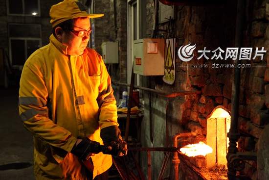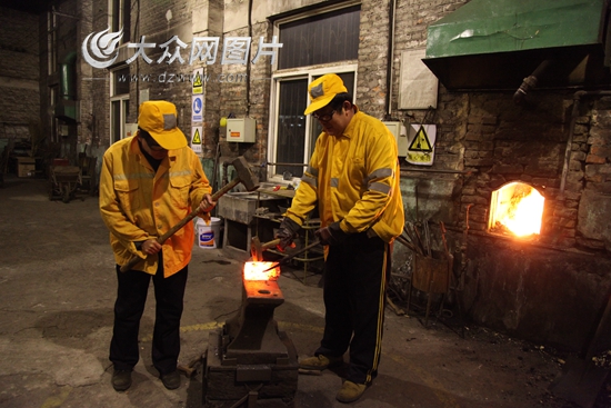 2月6日,大眾網記者走進濟南鐵路局兗州工務段煅焊工區得知,這里的幾位師傅仍在從事著手工打鐵這門職業,但是他們工作的時間都在晚上夜深人靜時。煅焊工區肩負著春運期間工務段日常工具、配件的加工和保障重任。他們的工長叫王玉海,今年50歲,從事這項工作已經很多年了。