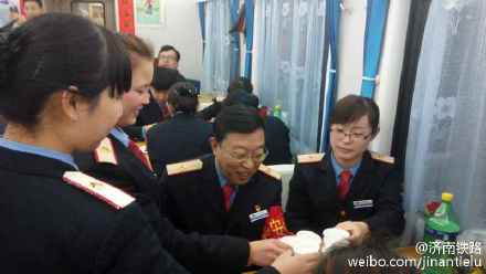 @大眾網:2月18日20:30,聚餐前,大家請即將退休的李建國老師發表新春感言。李老師說:“今年是最后一個列車除夕,經歷了四代列車,六次大提速,能為旅客服務這么多年,自己很知足也很滿足,感謝同事們多年來的關心,今年除夕將是自己人生經歷中最難忘的一個。”