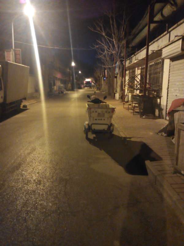 清掃車孤獨的停在這里,它的主人王阿姨在遠(yuǎn)處忙碌著。