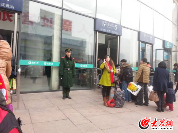 上午9時(shí),濟(jì)南火車站站前廣場,人們行囊鼓鼓,行色匆匆,排隊(duì)等待進(jìn)入候車廳。這時(shí),小編被候車廳門口幾位帥氣的“小鮮肉”武警小伙吸引了,他們一臉正氣,認(rèn)真嚴(yán)肅,如此凜然的樣子真讓旅客們心生安心。