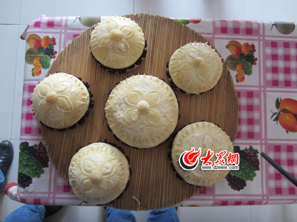 記者在鄰居張大娘家看到,年糕是用面粉和紅棗蒸制而成,精挑細(xì)選的大紅棗布滿年糕的底層面餅,然后再一層面一層棗,再加上一個帶有面花或面字的蓋子,預(yù)示著芝麻開花節(jié)節(jié)高。看到張大娘忙得不亦可乎,記者也洗了手想做個年糕,忙活半天,不是大小不合適,就是模樣不好看,最后再張大娘的指導(dǎo)下,終于做了一個還算說得過去的年糕。