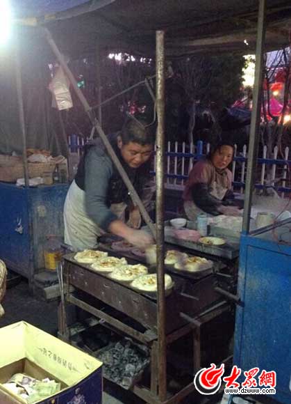 夜幕降臨,老張的燒餅攤前依舊站滿了排著長隊的老主顧,"老張,十個瓜子兒仁的燒餅,多放點瓜子仁和芝麻","好來,多放瓜子仁、芝麻!";"老張,晚上再喝點?","沒問題啊,過年就得喝呀,忙一年圖啥,喝,哈哈!"老張一邊和街坊們搭著話,一邊嫻熟的翻轉著烤燒餅的鐵板,臉上總是樂呵呵的。老張的媳婦兒在旁邊和著面,不時被老張的話逗樂。夫妻倆人起早貪黑的忙碌,卻總是這么樂觀,現在孩子上大學了,日子像這爐火一樣越來越旺,生活在他們看來,像剛出爐的燒餅一樣,又甜又香。