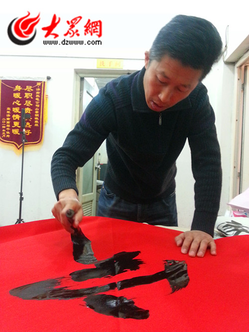 濟南熱電員工揮毫潑墨,為空巢老人書寫春聯。