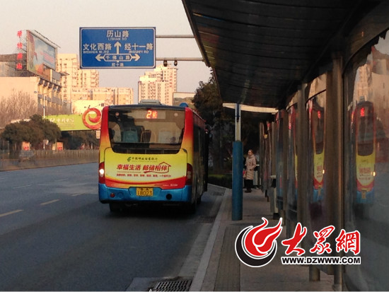 平日公交接龍進站,乘客擁擠不堪的站臺此時只有三位乘客在等車(大眾網記者韋輝 攝)