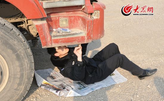 孫振對一輛肇事貨車進行現場勘察(資料圖)
