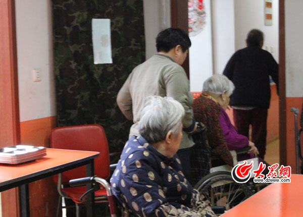 早上八點,擔任護理工的劉桂榮大姐開始了一天的忙碌,她和另一位同事負責護理一層的十幾位老人。兩人一直要忙到第二天早上八點,白天一小時巡視一次,晚上兩小時巡視一次,然后休息一天再接著干。從事護理行業四五年的劉大姐在很多老年公寓都工作過,“適合干這一行,誰家沒老人,誰不希望自己的老人晚年的生活過得更舒心一些。”干護理要不怕臟不怕累不怕麻煩,劉大姐每天的工作就是查看老人情況,為不能自理的老人喂飯,陪老人聊天,幫老人翻身,更換老人的床上用品……老人的輪椅輪胎沒氣了,細心的她找來氣管子打足氣。來自聊城的她今年快五十歲了,丈夫、兒子和女兒都在濟南工作、生活。今年春節,丈夫回家陪家里的老人過年,她則留下來護理老年公寓里的老人!俺弥鴮O輩還沒出生,正好出來再掙兩年錢。將來幫著看孩子的話就沒時間出來了。干護理這個行業,年輕人脾氣急干不了,年紀太大了又干不動。老人像孩子一樣,很多時候要哄,要有耐心。我這年齡還算比較合適。”她曾接受過專業培訓,對照顧老人比較在行,也喜歡這一行!霸俑咴僦氐睦先,我也能從床上抱到輪椅上!毖哉Z間,劉大姐頗有些女漢子的豪情。她也是個直脾氣,“我就是看不慣對老人不好!痹ミ^一家老年公寓試工,這家公寓到了晚上就把老人鎖在屋里,第二天早上再打開門。她干了一天就離開了!罢l都有老的時候。對老人好,心里踏實。”劉大姐感慨地說。