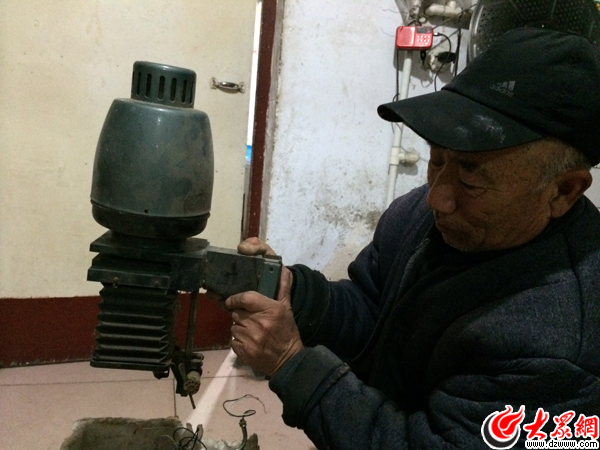 “老姚”拿著他用了20多年的照片放大器。現(xiàn)在已經(jīng)很少見了。大眾網(wǎng)記者 李兆輝 攝