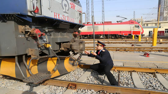 過年了,孫帥的大多數同事很少有機會和家人過年。“其實我也想回家過團圓年,多陪陪父母和妻子。但是為了讓更多的人與家人團聚,我必須堅守崗位,保證行車安全,我覺得即使不能回家過年也是值得的。”說完,孫帥,微笑著向記者揮手告別,駕駛著機車駛出機務段去濟南站掛車……