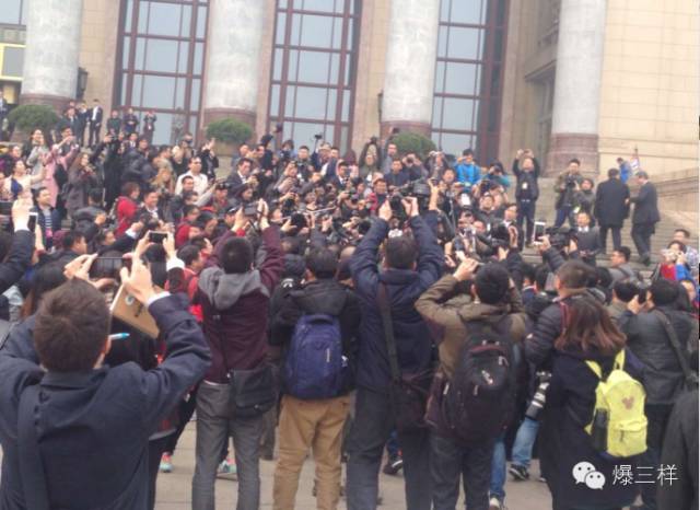 今天下午,距離全國政協十二屆四次會議開幕還有一個小時的時候,人民大會堂東側廣場上早已聚集了包括樣哥(爆三樣微信號:sdbaosanyang)在內的3000多位記者,一會兒,將有2000多位委員從這些手持“長槍短炮”的記者中間穿行而過。他們中有官員、軍人、大佬、明星、專家……其中,誰將成為當天的焦點人物,或許委員們與樣哥一樣,在下車的那一刻,心中依然忐忑。“李彥宏!”14點25分,當李帥哥出現的時候,現場的沉寂第一次被突然打破,當時樣哥還尋聲四處找人,只見前方一團人群迅速向樣哥奔來,要說走路的速度,李彥宏還真不比劉翔差,沒拍到正臉,樣哥只能含恨目送人群遠去。李彥宏之后,姚明、鞏漢林、張國立、姜昆、俞敏洪等大多都遭遇了李彥宏相似的圍堵和追問。不一會兒劉翔也來了,但他竟神奇地躲過了記者們的圍堵,悄悄地走進了會場。按說3000多記者盯著,不應該又漏掉他呀。可是,這次劉翔就像去年喊了一句“姚明來了!”一樣幸運,又有人替他出來解圍了。此人身穿黑色外套,頭戴深藍色帽子,一下車就被“逮”著了。