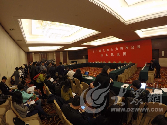 大眾網北京3月7日訊(特派記者 邢玉軍 樊思思 馬俊驥 王長坤 趙洪棟)今天下午3點,十二屆全國人大四次會議山東代表團舉行開放團組活動,將對外開放第二組。開放活動分為兩個階段進行,第一階段為代表審查“十三五”規劃綱要草案,第二階段是媒體采訪,第二組的全體代表將接受采訪。全國人大代表、山東省委副書記、省長郭樹清將回答中外記者提問。