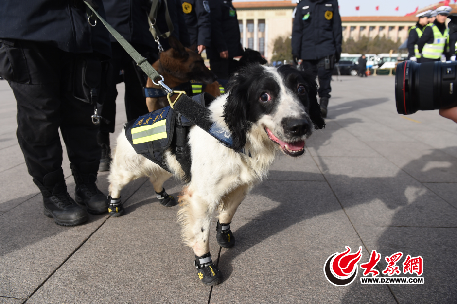3月5日,十二屆全國人大四次會議在北京人民大會堂開幕,防爆犬在巡邏。