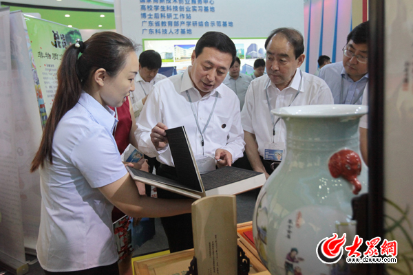 孫守剛首先來到位于深圳會展中心1號館主通道位置的山東展區,觀看了大眾報業集團、山東廣電集團和山東廣電網絡集團等文化企業展示,魯版圖書、精品魯劇展示,泗水儒陶、威海錫鑲茶具產品展示等。隨后參觀了青島國家數字出版基地展區、“泰山石敢當齊魯畫家中國行(深圳)”展、濟寧展區、威海展區。他對山東文化改革發展取得的成就給予肯定,要求山東展團要突出特色,多角度、多層次、多元素地展示全省文化改革發展成果,多為山東文化企業展銷交易、尋求合作搭建平臺,推動文化產業項目招商引資。