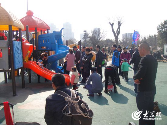 一邊是悠揚的二胡聲,另一邊則是孩子們的笑語喧恬。在這個特殊的日子里,植物園兒童游樂園還是一如既往地充滿歡聲笑語。不少孩子正在滑梯組合里愉快地玩耍,而家長則或站在一旁提點,或坐在長椅上滿足地看著。在兒童樂園的一角,周女士正心滿意足地看著調皮快樂的孩子們,不時露出幸福的微笑。周女士今年67歲了,兒子和女婿站在正玩得歡的孩子身邊照顧著,女兒與兒媳則坐在不遠的長椅上閑話家常。據周女士說,昨天女兒一家就從北京趕到這里來過年,一家子團聚在一起,趁今天天氣好,帶著孫子外孫來這里高興高興。