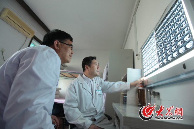 5月25日,在山東省胸科醫(yī)生辦公室內,高大川一邊認真觀察一名患者的ct檢查結果,一邊與主治醫(yī)生討論該患者的病情。