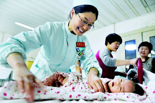 鄒平縣人民醫院小兒科護士在照料嬰兒。□記者 李勇 通訊員 董乃德 報道