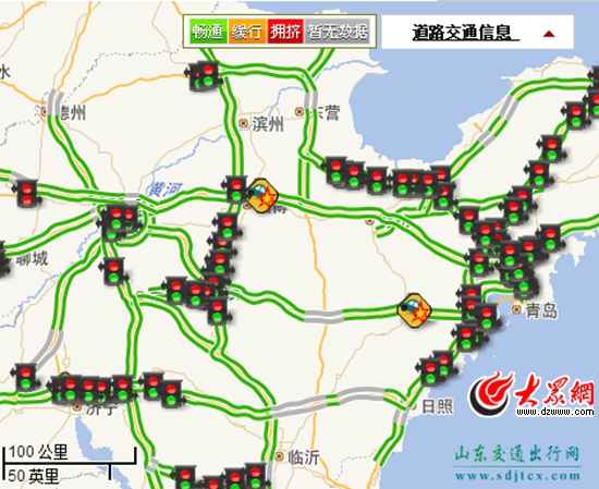 受雪后路滑影響,截至下午4點30分,山東各地高速仍嚴重擁堵。