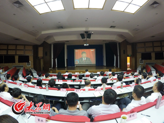上午10:00,山東省委黨校第26期中青班學(xué)員們集合在教學(xué)樓報(bào)告廳,一起收看慶祝中國共產(chǎn)黨成立95周年大會(huì)直播。大家聚精會(huì)神、邊聽邊記,習(xí)近平總書記的講話不時(shí)引起報(bào)告廳內(nèi)一陣陣熱烈的掌聲。