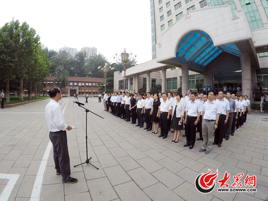 上午9:00,雄壯的國歌聲響起,鮮艷的五星紅旗冉冉升起,山東省委黨校第26期中青年干部培訓(xùn)班的56名學(xué)員集合在西校區(qū)教學(xué)樓前,整齊挺立,一邊高唱國歌一邊對國旗行注目禮。
