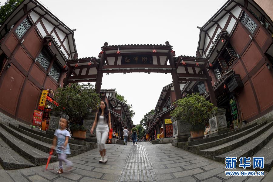 游人在貴州遵義“紅軍街”參觀(6月18日攝)。今年是中國工農紅軍長征勝利80周年,革命老區貴州遵義市的“紅軍街”迎來紅色旅游高潮。“紅軍街”是遵義會議會址景區的重要組成部分,毗鄰遵義會議會址和遵義公園,占地面積17000平方米,房屋建筑面積16404.4平方米,與遵義會議會址、遵義會議陳列館等景點,共同構成遵義紅色旅游的一條主線,是遵義市重點打造的紅色旅游精品工程。新華社記者歐東衢攝
