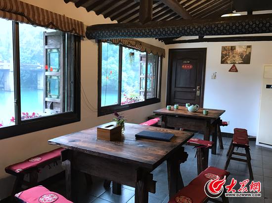 羊肉面、家常菜固然吸引人,不過今天,大眾網記者最想去的還是一家叫津驛客棧的民宿。沒錯,就是去年互聯網大會期間,丁磊招來互聯網界“半壁江山”聚餐的那家飯館。沿石板路向前,數到第51號民宿,就是這家客棧啦。走進去才發現,當時大咖們聚餐的房間并不大,勝在臨水而居,推窗就是靜靜的河面,別有一番韻味。小木桌、長條凳、碧綠的茶壺茶碗,一切都跟當時的聚餐場景一模一樣。聚餐中與大咖們同桌合影的老板娘穆穆,此刻就笑吟吟地站在大眾網記者身邊。她告訴記者,那次聚餐是丁磊很早就預定了的,聚餐當天呼呼啦啦來了十四五個人,店里的方形小木桌不夠大,就把三張桌子拼起來,這才有了“網紅”照片里的“長桌宴”。穆穆還透露,丁磊以前也常來烏鎮,是她家的老顧客了,不過直到互聯網大會召開,她的小店因為大咖們的聚餐而人氣暴漲后,她才知道這位常來光顧的老朋友就是鼎鼎大名的網易老板啊。