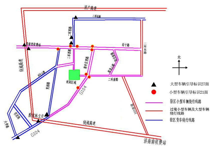 駐區(qū)車輛建議繞行路線有南辛莊西路、白馬山南路、郎茂山路及陽光新路,駐區(qū)大型車輛建議繞行黨楊路及劉長山路。