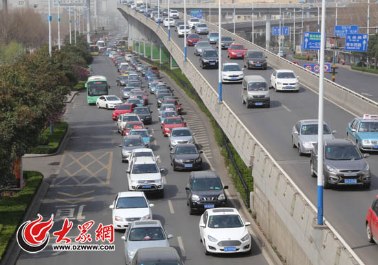 高峰期的經十路上,車輛排成長龍緩慢前進(資料照片)