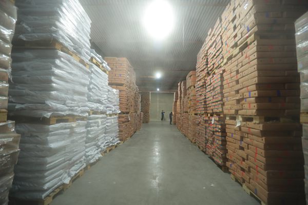 大眾網記者看到,打開的冷庫中,整整齊齊碼放著包裝嚴實的畜禽產品。